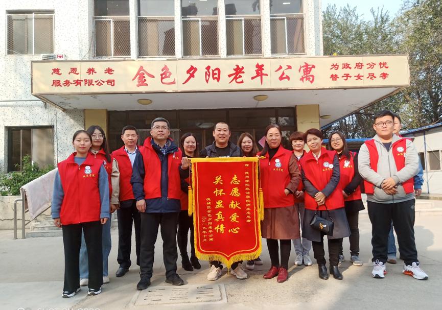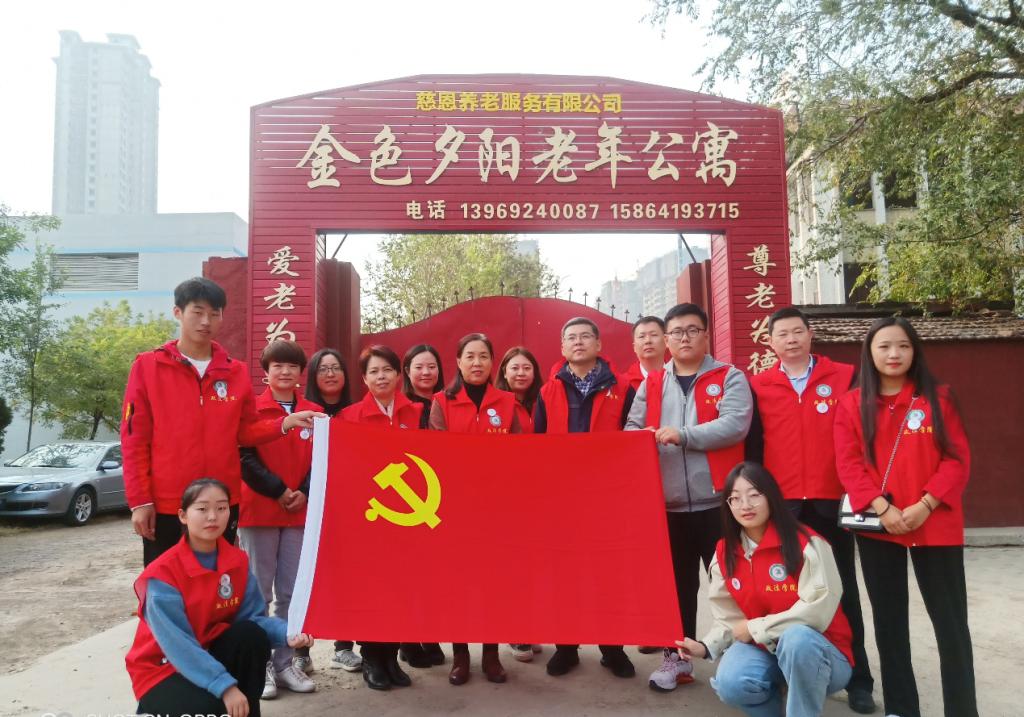 为深入推进“不忘初心,牢记使命”主题教育,弘扬中华民族尊老敬老的传统美德, 2019年10月19日,政pg娱乐电子游戏官网入口教工第二党支部教师带领大学生志愿者们赴金色夕阳敬老院开展了志愿服务活动。