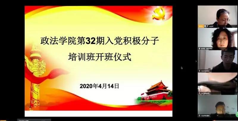 政pg娱乐电子游戏官网入口党总支按照学校组织部统一安排部署,于2020年4月14日下午举行了第32期入党积极分子培训班开班仪式。因疫情原因,本次开班仪式通过线上视频方式举行。党总支书记张秀琴,党总支副书记米彦、本期培训班全体授课老师、政pg娱乐电子游戏官网入口第32期入党积极分子培训班全体学员参加了开班仪式。