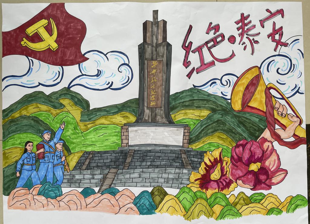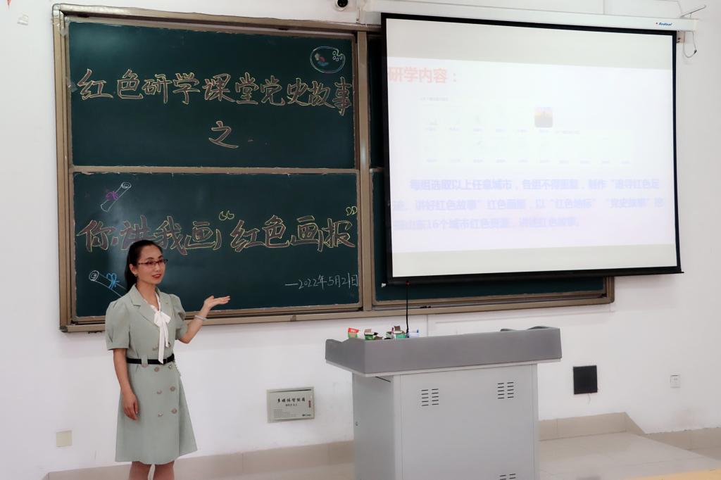 在研学过程中,同学们分成小组,以“我讲你画”的方式,讲山东红色故事,画山东红色足迹,深刻认识和理解山东“红色地标”、“红色人物”、“红色故事”等红色基因,深入挖掘山东16个城市的红色资源,图文并茂地绘制了具有各地市红色特征的画报,同心向党传承山东红色文化及其时代价值。