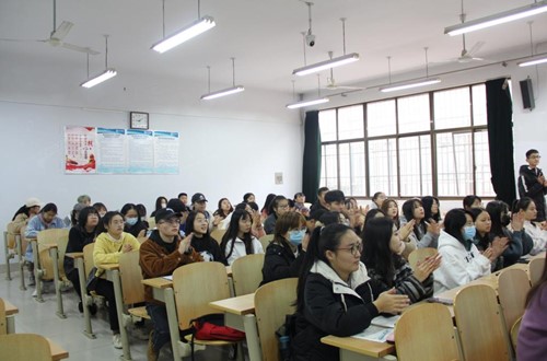 活动伊始,主讲人宣读了举办本次活动的主题、目的及意义,并依次介绍了六名高分通过四六级考试的优秀学生代表。随后由优秀学生代表依次分享自己的备考经验。优秀学生代表们结合自身备考经历向同学们分享了备考技巧和方法。活动过程中,同学们认真听讲、记录。会后同学们纷纷表示获益匪浅并坚定了对英语学习的信心。