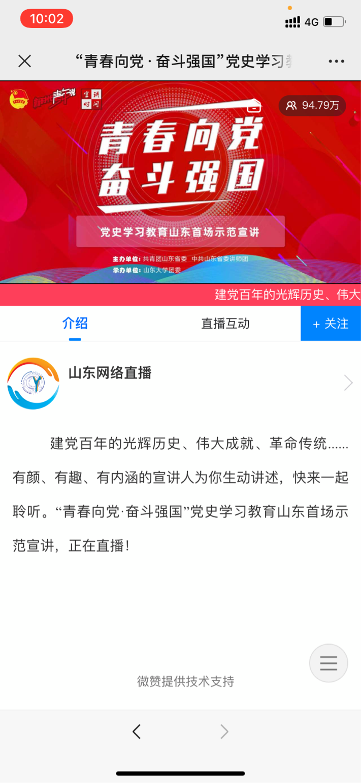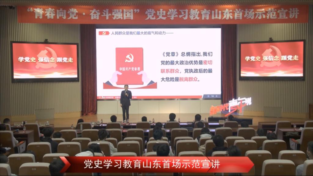 2021年4月16上午9:30-11:30,于山东网络直播平台,pg娱乐电子游戏官网入口有序组织学生收看了山东省首场“青春向党,奋斗强国”示范宣讲直播活动。此次活动旨在让同学们更加认识党,了解党,坚持学史明理、学史增信、学史崇德、学史力行,深刻领会习近平总书记的重要讲话的丰富内涵,扎实党史学习教育。