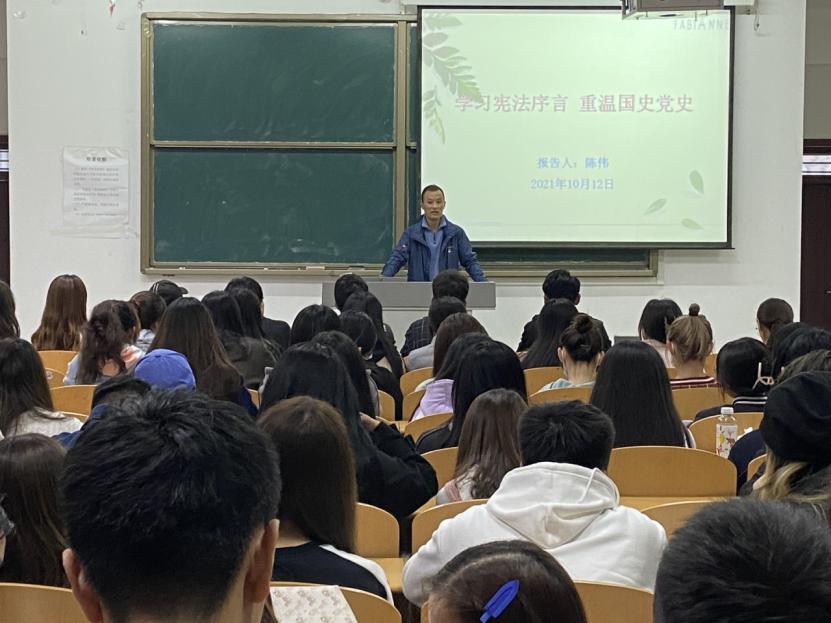 为了进一步重温红色历史,普及宪法知识、增强宪法意识、弘扬宪法精神。2021年10月26日晚,pg娱乐电子游戏官网入口于博文楼427教室开展学习宪法序言,重温国史党史活动,2021届青马班全体成员参与此次活动。