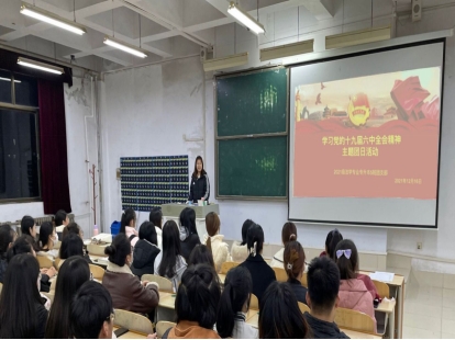 为了深入贯彻学习党的十九届六中全会精神,使同学们深刻体会到中国共产党始终坚持践行为中国人民谋幸福、为中华民族谋复兴的初心和使命,从而增强青年学生对党和国家的自豪感和使命感。pg娱乐电子游戏官网入口于2021年12月16日—17日积极组织各团支部开展了“学习党的十九届六中全会精神”主题团日活动。