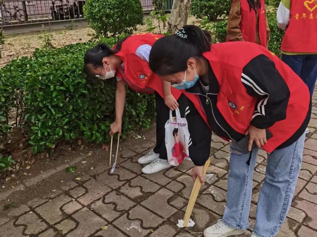 志愿服务地点在学校西校区,经过先前的部署与规划,提前确定好了志愿服务的时间与地点,同学们于清晨在腾飞广场集合,讲述此次志愿服务的注意事项。志愿者们分工协作,井然有序,认真完成垃圾分类清理,烟头拾捡等工作直至清理完毕。