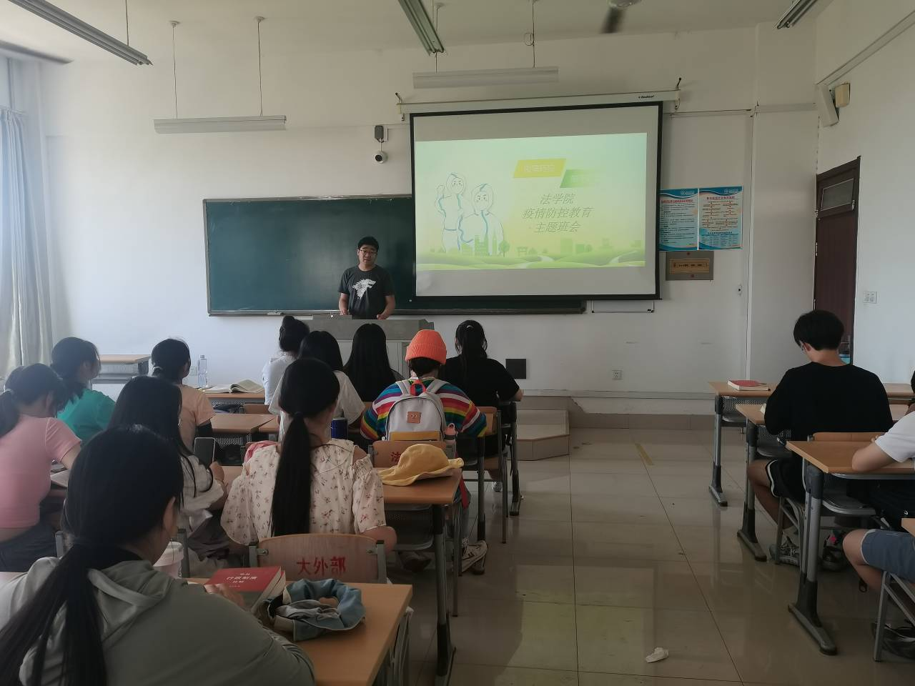 班会课上,各班辅导员重点介绍了疫情期间的安全问题。通过分析当前的疫情防控形势,使同学们意识到了疫情防控仍刻不容缓,从而号召同学们重视安全问题,严格遵守学校疫情防控管理各项规定。同时,大家应自觉做好个人防护,勤洗手常开窗,戴口罩,量体温,坚决守住学校疫情防控安全线。同学们纷纷表示,会积极配合学校采取的防疫措施,做好个人防护,构建健康安全的学习及生活区域。