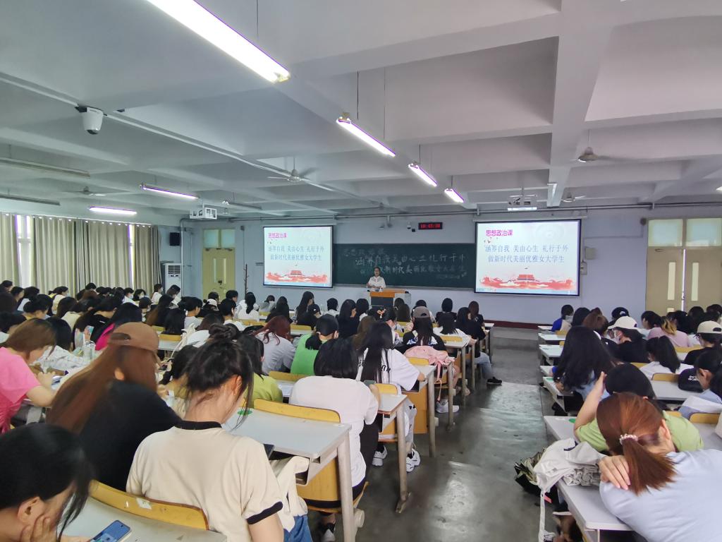 2022年6月9-10日,pg娱乐电子游戏官网入口分别在博文楼0427教室和美术楼0409教室开展以“涵养自我 美由心生 礼外于行 做新时代美丽优雅女大学生”为主题的思想政治课。学院2019级、2020级、2021级全体女生聆听了讲座。