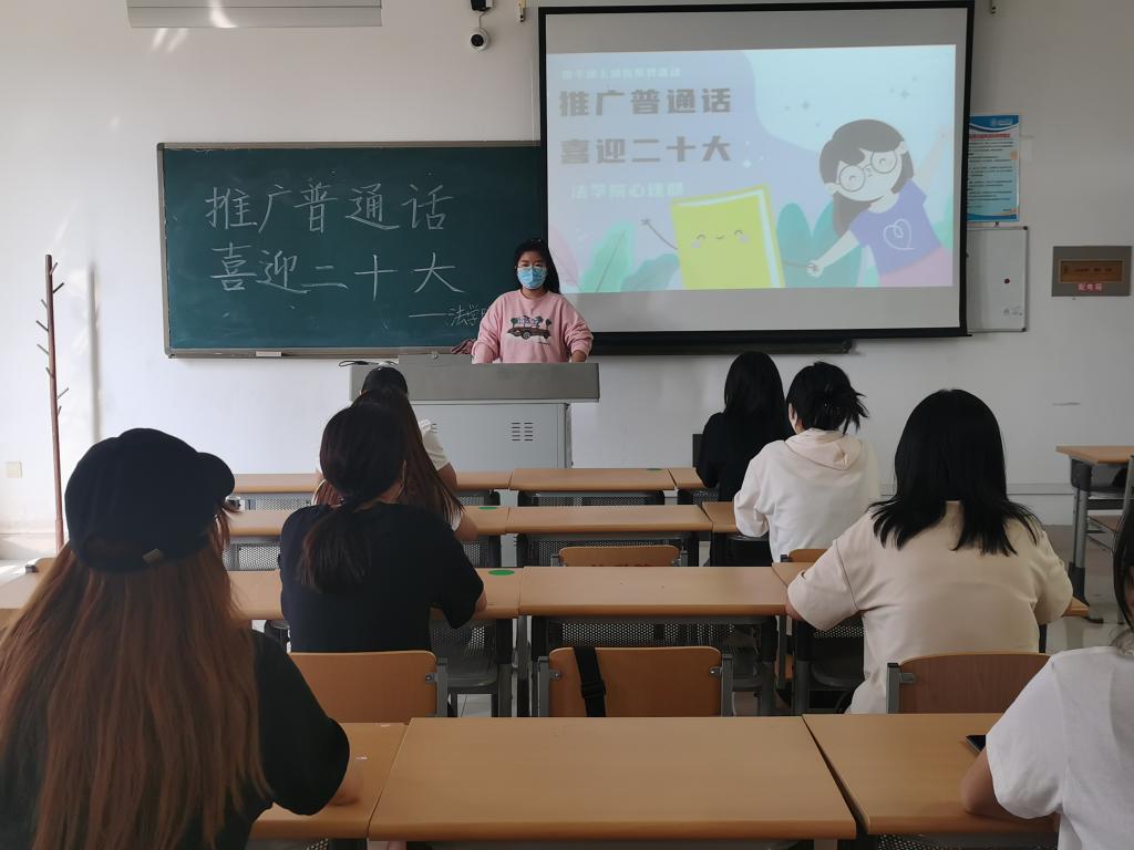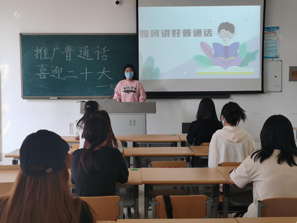 为进一步加大普通话的宣传力度,增强学生们的语言规范意识、法治意识和参与意识,引导学生自觉弘扬中华民族传统文化,为党的二十大胜利召开营造浓厚氛围,pg娱乐电子游戏官网入口于9月18日在博文楼417教室举办了“推广普通话,喜迎二十大”为主题的普通话讲座。