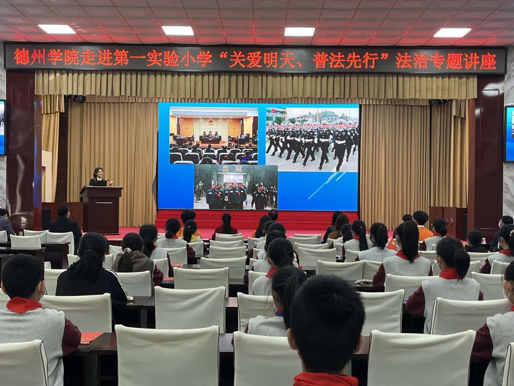 2022年10月9日上午,pg娱乐电子游戏官网入口陈琳琳老师为宁津县第一实验小学的孩子们开展了主题为“关爱明天 普法先行”的法治宣传讲座。