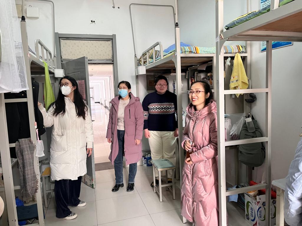 活动伊始,向同学们下发走访活动文件方便同学们调整时间打扫卫生。在走访过程中,领导、老师与学生们亲切交谈,交流宿舍暖气等问题,并叮嘱同学们做好安全卫生防护措施。