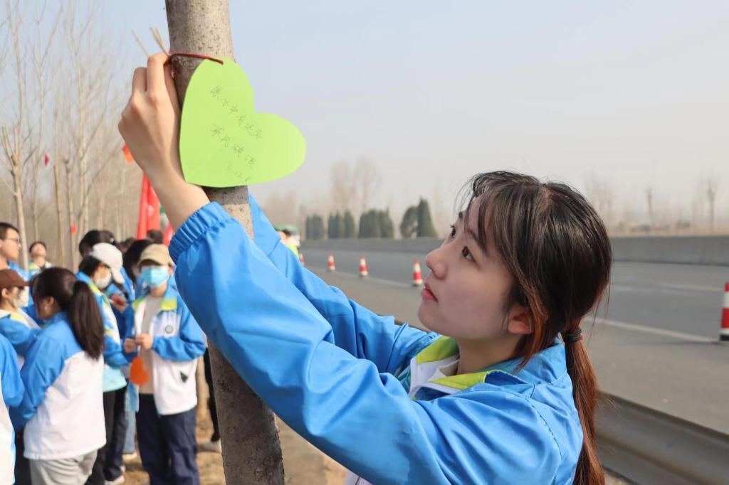 “2023年,愿向树一样向上向阳成长”“栽种一棵树,孕育一个希望,让世界的每一个角落充满绿色”“愿心中有远方,乘风破浪” ……栽种结束后,同学们纷纷在心愿卡上写下了美好祝福和愿望,并将它们挂在新栽植的树木上。一张张五颜六色随风摇曳的心愿卡,承载着青年学子投身生态文明建设的承诺与担当。