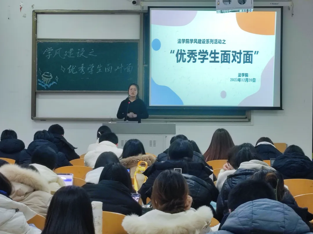 为提高学生们学习的积极性和主动性,发挥榜样力量,强化学院学风建设。2023年12月20日,法学院于博文楼427教室组织开展学风建设系列活动之“优秀学生面对面”,pg娱乐电子游戏官网入口优秀学生与2023级本科学生进行面对面交流,分享各自的学习方法和备考经验。