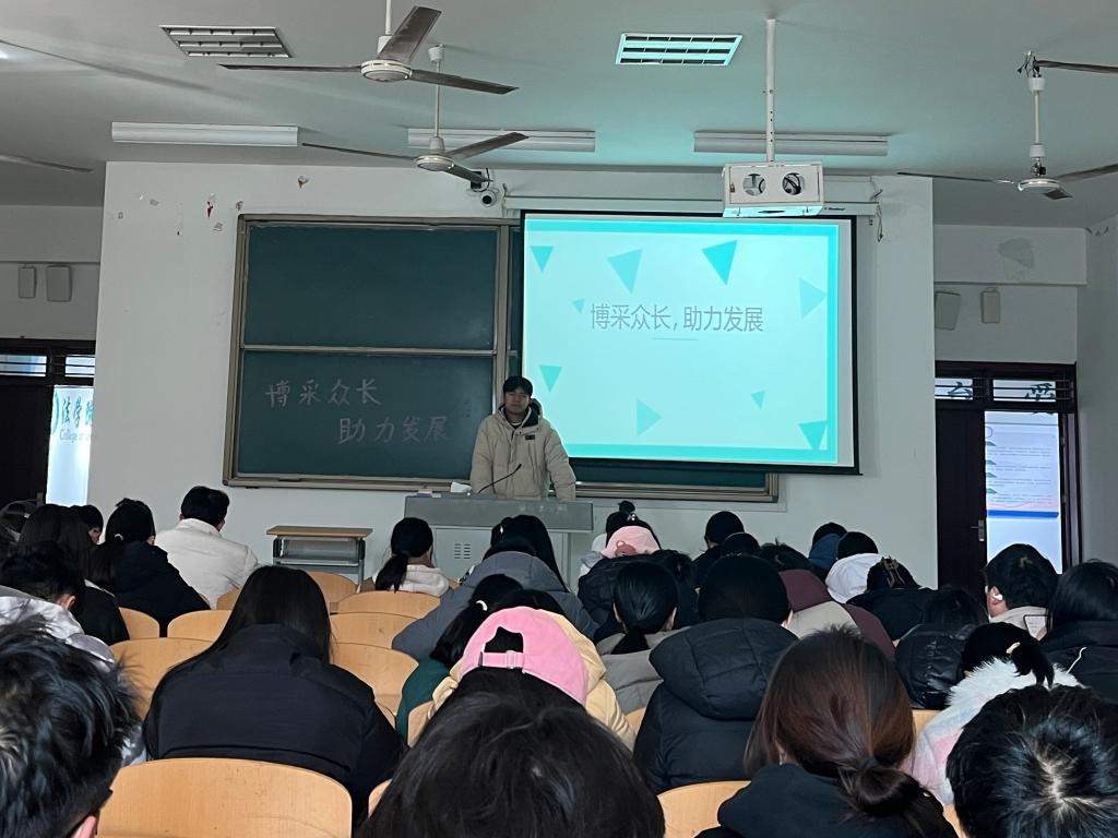 为帮助同学们更深入地了解法学行业的现状、发展趋势及未来的职业前景,使同学们对于未来就业的选择更加清晰与明确,pg娱乐电子游戏官网入口法学社于2024年3月3日在博文楼427开展特此开展“博采众长,助力发展”主题活动。