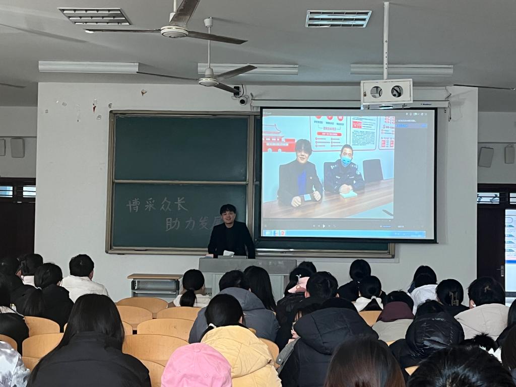 活动伊始,主讲人先向同学们抛出“法学专业考研还是考公更为合适”“未来的就业方向”等一些简单问题引发同学们对未来职业发展的思考,随后向同学们播放了一则假期期间法学社成员对某市公安局分局王警官的座谈采访视频,王警官在某市分局法制大队任职,主要负责对案件的审核和定性研究。视频中,王警官为同学们介绍了他在法制大队的日常工作,并为同学们的职业发展与就业方向提供了宝贵意见,鼓励同学们扎实学好法学专业知识,积极参与实习实践,不断积累经验。在观看视频之后,由采访人王亚辉向大家分享自己的感言并与同学们互动交流,大家踊跃发言,并表示对自己的职业生涯有了更加明晰的规划。