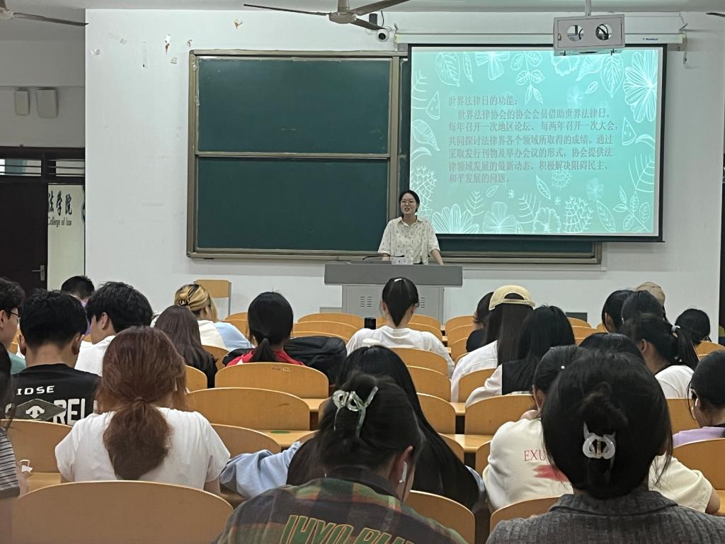 为了深入学习宣传贯彻习近平生态文明思想、引导全社会树立“尊重自然”的生态文明理念,同时为了加强我校学生对“世界法律日”的认识,进一步提高学生的法律素质和法律意识。4月22日,pg娱乐电子游戏官网入口法学社于博文楼427教室开展了“以法之名,守护地球”学时课活动。