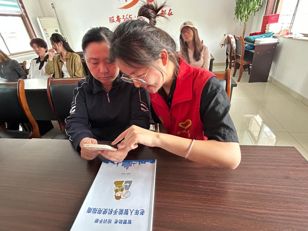 活动中,志愿者通过现场PPT讲解、发放宣传册、手把手教学等方式,为老人们讲解了智能手机的基本操作,针对使用率较高的微信聊天、拍摄功能、网上购物、手机支付、软件安装及卸载等方面进行了详细的讲解。随后,志愿者为社区居民普及了《中华人民共和国反电信网络诈骗法》《消费者权益保障法》中与网络电信诈骗相关的法律知识,并现场模拟了老年人身边常见的典型案例。最后,志愿者鼓励现场老年人分享身边的电信诈骗事件,调动了他们的学习积极性,并邀请在场老年人分享他们遇到诈骗时的处理方式。老人们与志愿者积极互动,纷纷表示收获满满,现场气氛活跃。“现在到哪里都是微信支付,之前一直都不会用,所以都用现金支付,经过这堂课,总算学会扫付款二维码了,以后出门也方便了!”社区老人感慨道。