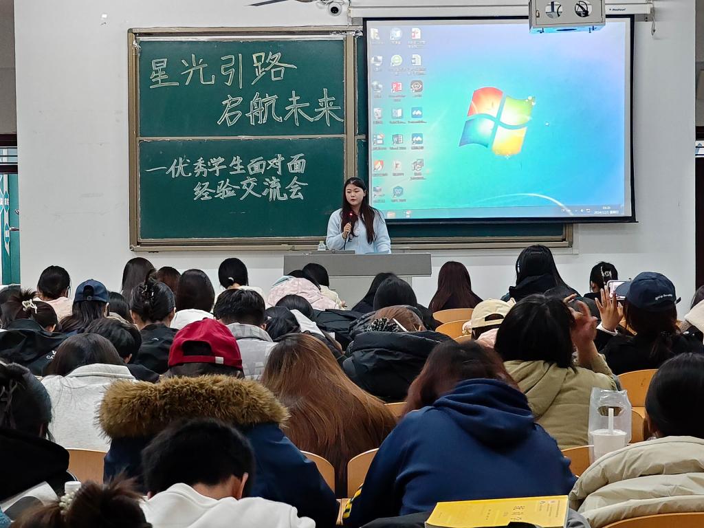 为加强学风建设,引导同学们更科学地规划大学生活,吸取宝贵的学习经验,营造积极向上的学习氛围, 12月1日,pg娱乐电子游戏官网入口于博文楼427教室举办了“星光引路 启航未来”优秀学生面对面经验交流会。