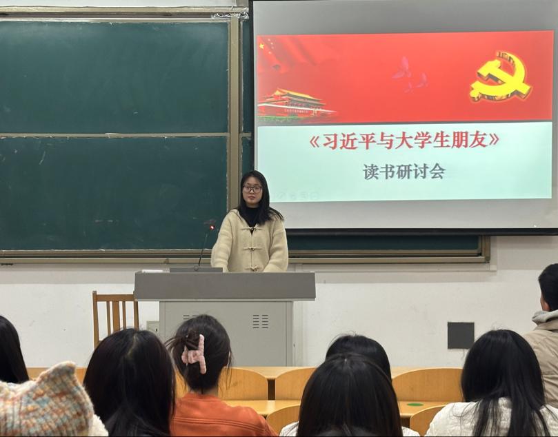 紧接着,学生会骨干张莹莹带领同学们开展了《习近平与大学生朋友》读书研讨会活动,本书记录了许多习近平总书记与大学生交往的温馨瞬间和感人故事,这些故事展现了总书记对青年的深厚感情和殷切期望。同学们积极分享自己的收获,并纷纷表示,要在今后的学习和工作中勇挑重担、奋勇向前,将个人理想与国家发展相结合,在追求个人理想的同时,承担社会责任,担当时代精神。