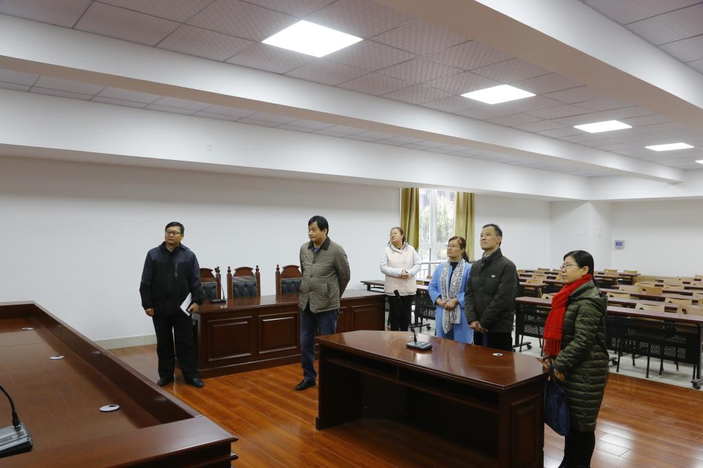 赵校长还到pg娱乐电子游戏官网入口模拟法庭进行了现场调研。学院负责人汇报了模拟法庭建设情况以及模拟法庭综合利用的有关安。赵校长给予充分肯定,并对模拟法庭建设提出了工作建议,要求pg娱乐电子游戏官网入口以模拟法庭实训中心为平台进一步抓好专业实践教学,同时要借助实训中心开展好学生社团、教研科研交流、社会服务等工作。