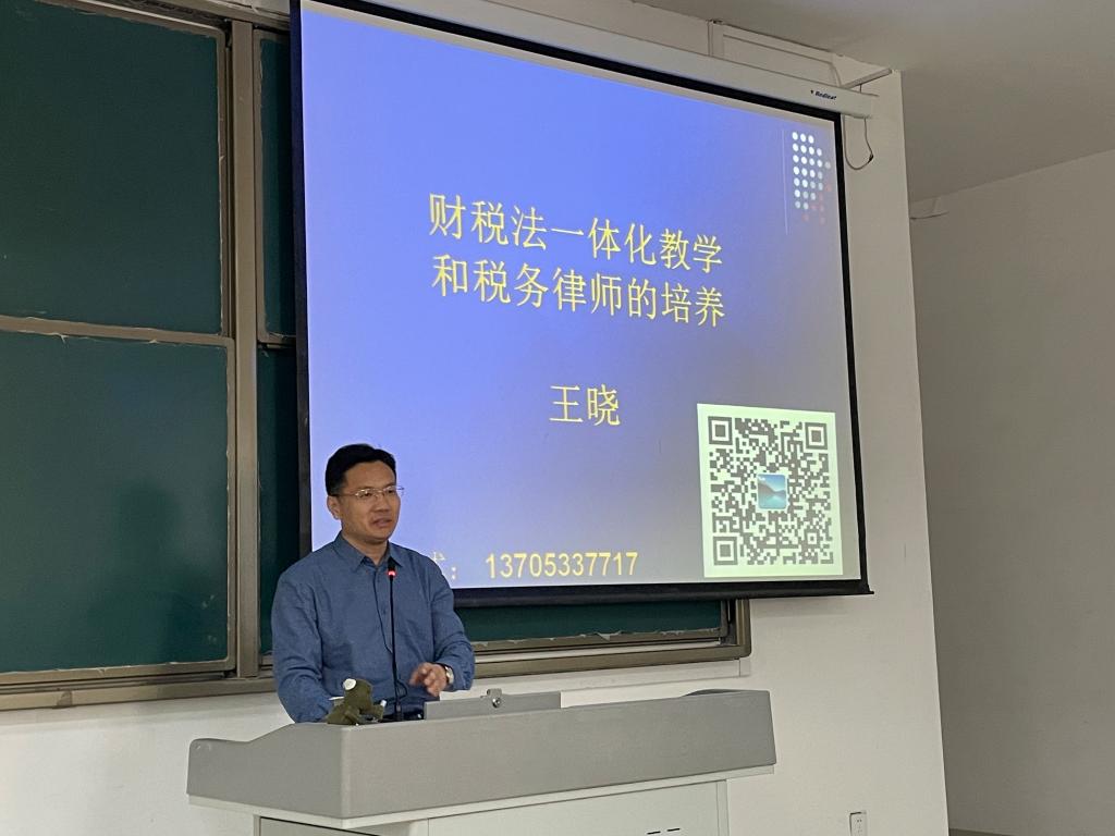 王晓博士与pg娱乐电子游戏官网入口教师围绕涉外法治人才培养、行政管理专业改革创新、打造国际化办学格局等主题进行了工作交流。28日下午,王晓博士为2021级法学专升本班同学作了“财税法一体化教学和税务律师的培养”讲座,结合我国当下社会发展阶段,展望了税务律师行业的现状和发展前景,阐述了开展财税法一体化教学的改革思路,鼓励同学们加强职业规划,努力学习,成为“法律+英语”“法律+会计”等社会急需的复合型人才。