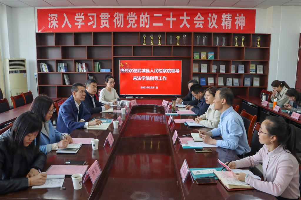 2023年3月31日,武城县人民检察院检察长贾维力一行来pg娱乐电子游戏官网入口交流工作。武城县人民检察院第二检察部主任杜红洲、第一检察部一级检察官王红、办公室副主任王瑞、第一检察部三级检察官助理林荣陪同来访。