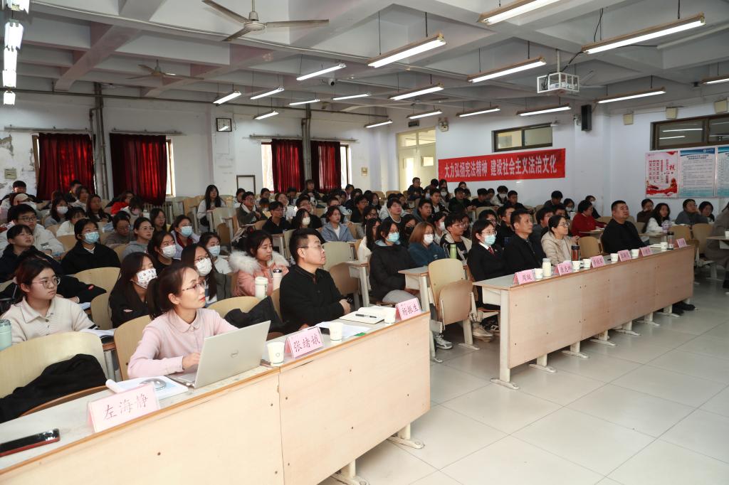 周璇同志紧密结合学生的需求,围绕自己从检6年以来的工作经历,通过现场互动、案例分析等方式,深入浅出的分析了作为一名法学生应当如何高效的通过司法考试以及在考研和考公之间如何选择,进而列举了法律人必备的几种素养,以此激励大家成为一名有情怀的法律人。