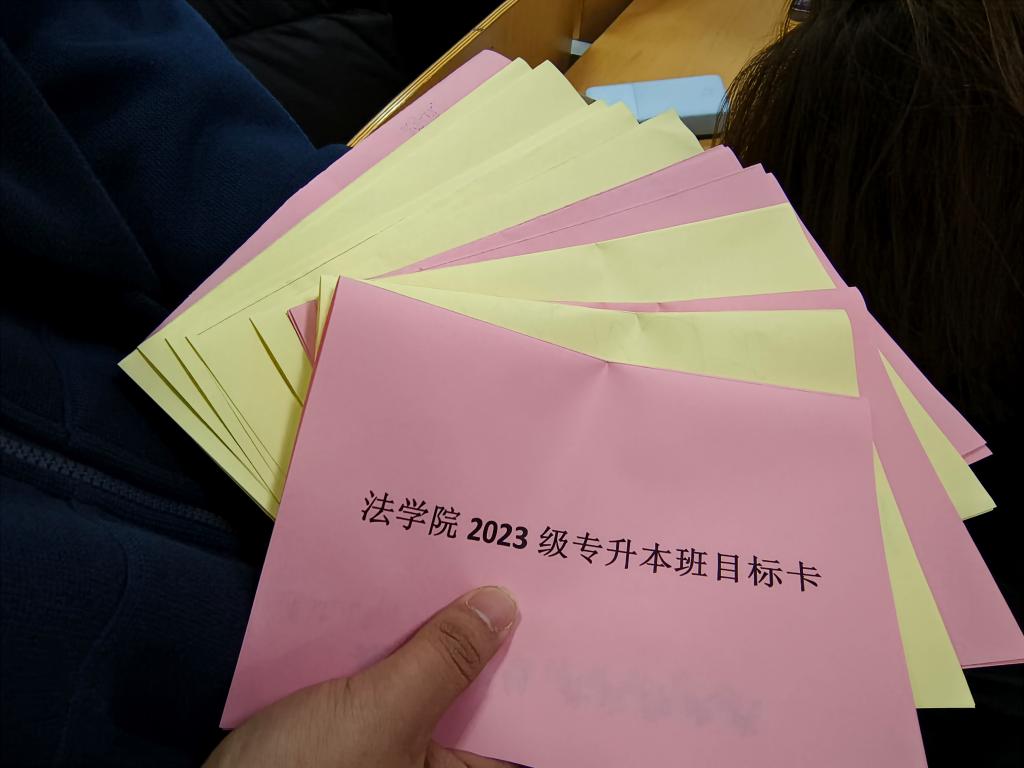 为进一步营造浓厚的学风氛围,塑造学生良好的学习习惯与不懈进取的优秀品格,促进广大学生学业目标达成度。2月27日,2023级法学专升本班“起跑即冲刺·开战即决战——学业目标达成动员会”主题班会在博文楼427召开,班主任左海静老师组织,全体同学参与。