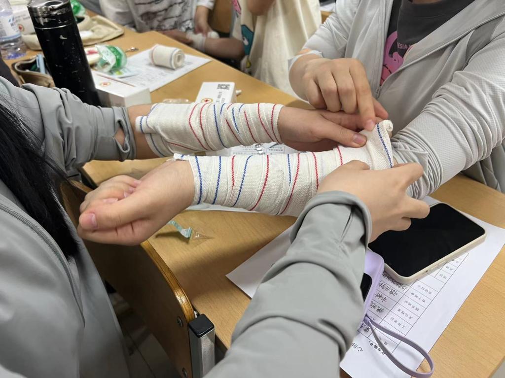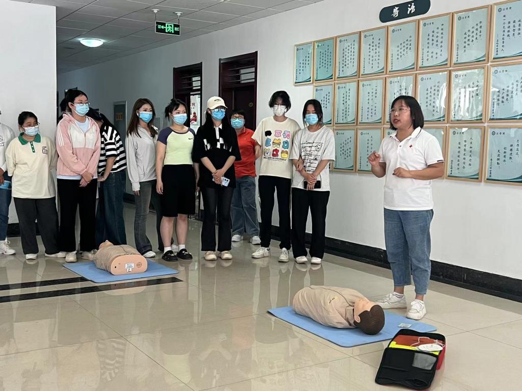 实训训现场,德州红十字会专业救护人员通过生动的案例和详细的讲解,向学生们传授了心肺复苏、止血包扎、骨折固定等基本的急救知识和技能。此外,还进行了心肺复苏模拟演练,让学员们亲身体验了急救过程,加深了对急救知识的理解和掌握。