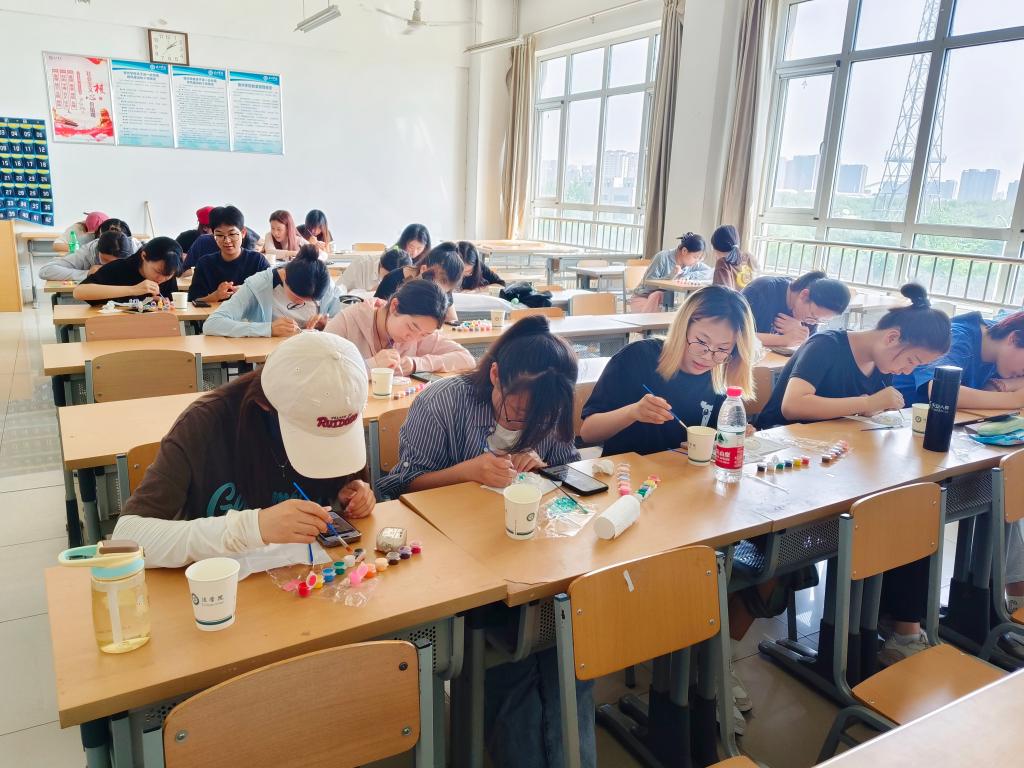 在“5·25”心理健康日到来之际,为缓解学生心理压力,丰富心理健康教育内容,培育学生乐观健康的心态,营造关心下一代的浓厚氛围。5月14日,pg娱乐电子游戏官网入口关工委“心彩绘梦,笔触生辉”石膏娃娃彩绘DIY活动在博文楼417教室举行。40余名学生参加了活动。