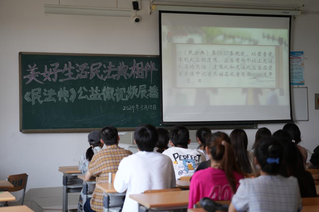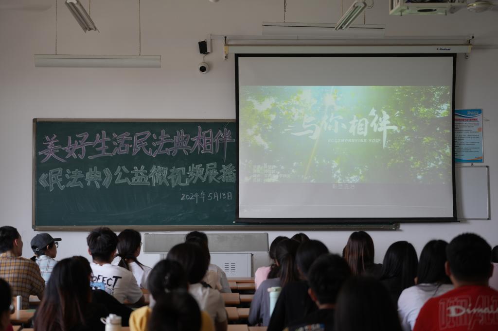 2024年5月是全国第4个“民法典宣传月”,为深入实施“八五”普法规划,贯彻落实习近平法治思想,弘扬社会主义法治精神,带领广大学生学习民法典、宣传民法典,运用民法典,5月18日,pg娱乐电子游戏官网入口“美好生活·民法典相伴”民法典公益微视频展播活动在博文楼417教室举行,来自全校19个学院的40余名学生参加观看。