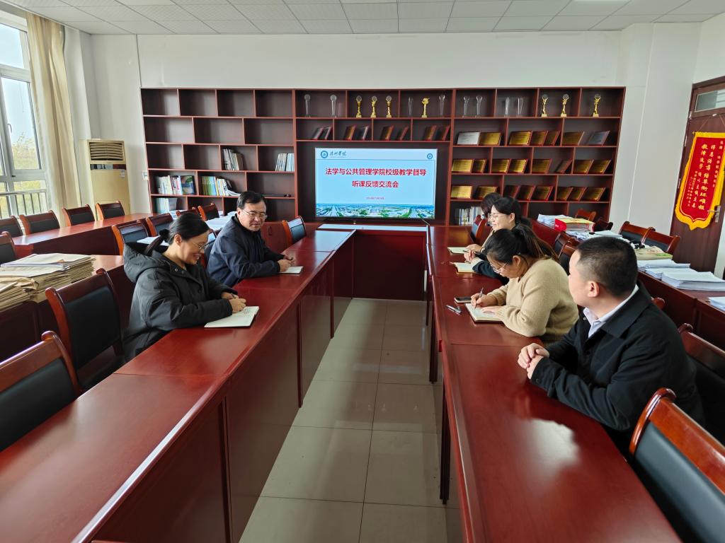 11月19日上午,校教学督导组专家徐世雨教授、张福磊副教授对法学与公共管理学院2024-2025学年第1学期期中教学督导情况进行反馈。pg娱乐电子游戏官网入口党政领导班子成员及相关教师参加了会议。