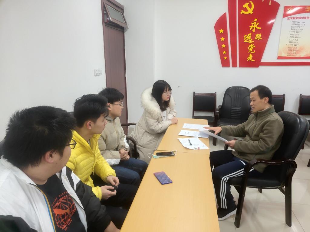 在与2017级法律本科、2019级法学专升本班预毕业生的交流中。陈伟老师强调了三个方面的内容。关于考研复试,陈伟老师讲解了通过图书馆中国知网数据库等途径获取研究资料的方法,强调要充分利用寒假进行考研复试准备;关于毕业论文,陈伟老师介绍了毕业论文工作计划,结合毕业论文写作模板对各部分的撰写要求进行了解释和说明,并对论文撰写的进度进行了安排;关于毕业实习,陈伟老师介绍了工作计划安排,讲解了毕业实习日志和实习报告的撰写要求。